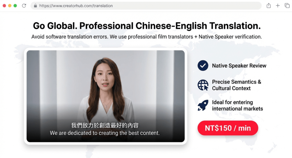 - 拒絕軟體翻譯: 語音辨識或 AI 翻譯的錯誤率高,且常有斷句不當和語義不符合情境的問題,這會讓您的頻道專業形象受損。